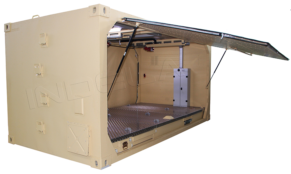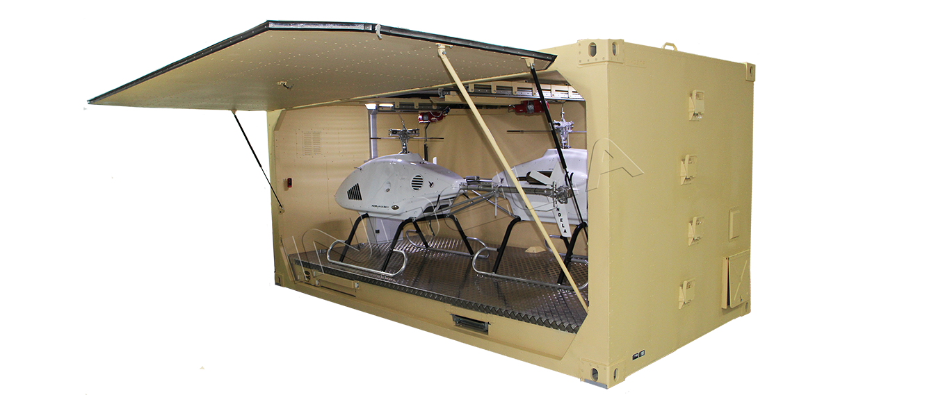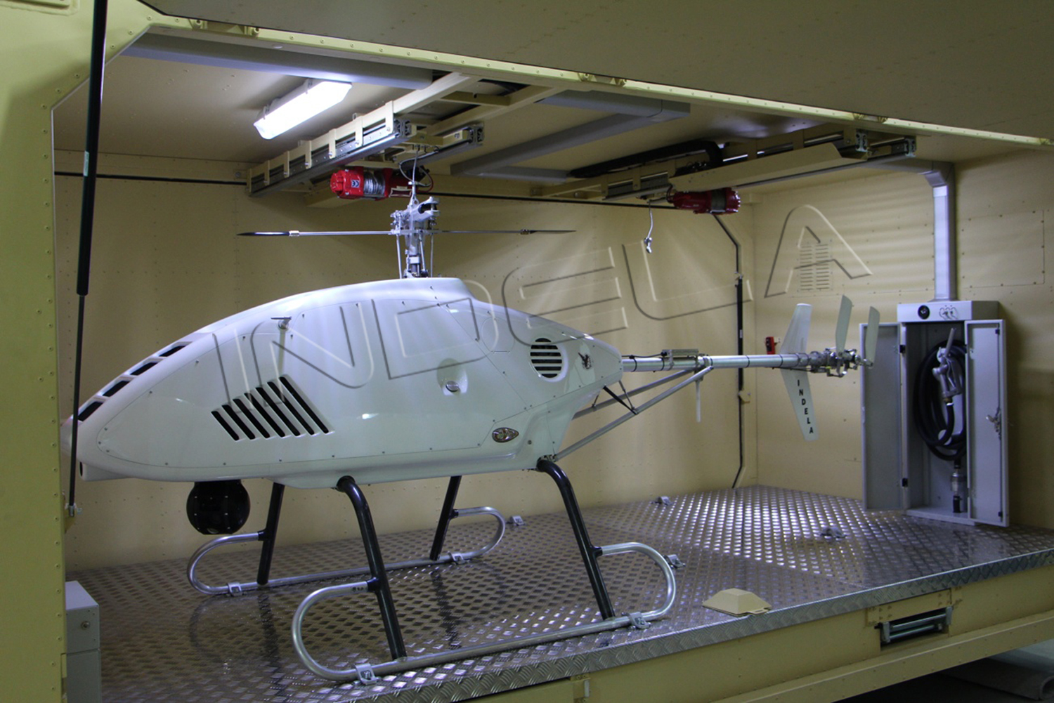 «INDELA-SC» represents the purpose-designed transportation house-type body with two rising side split-design panels, front and rear walls, raised floor and ceiling panel. The house-type body contains the internal compartment where 2 UAV are installed and moored.